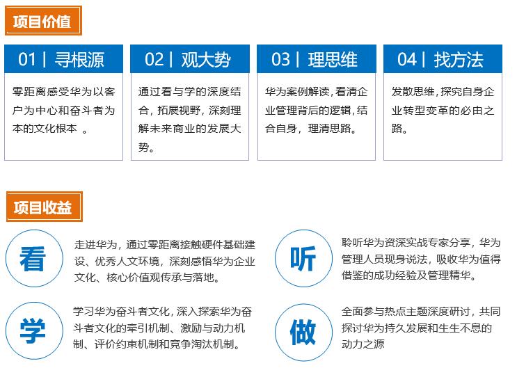 08:40-09:40 | 華為標(biāo)桿學(xué)習(xí)行前引導(dǎo) ? 華為參訪學(xué)習(xí)行程介紹與華為集團(tuán)概括 ? 華為參訪學(xué)習(xí)看點(diǎn),學(xué)習(xí)點(diǎn) 隨團(tuán)顧問拋出華為參訪看點(diǎn),學(xué)習(xí)點(diǎn),引導(dǎo)大家對(duì)于華為管理之道的思考,帶著問題走進(jìn)華為參訪。 | 巴士課堂 學(xué)習(xí)顧問 |