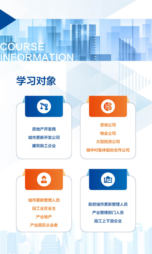 | 課程對象: | 房地產(chǎn)開發(fā)商、城市更新公司等 | ||