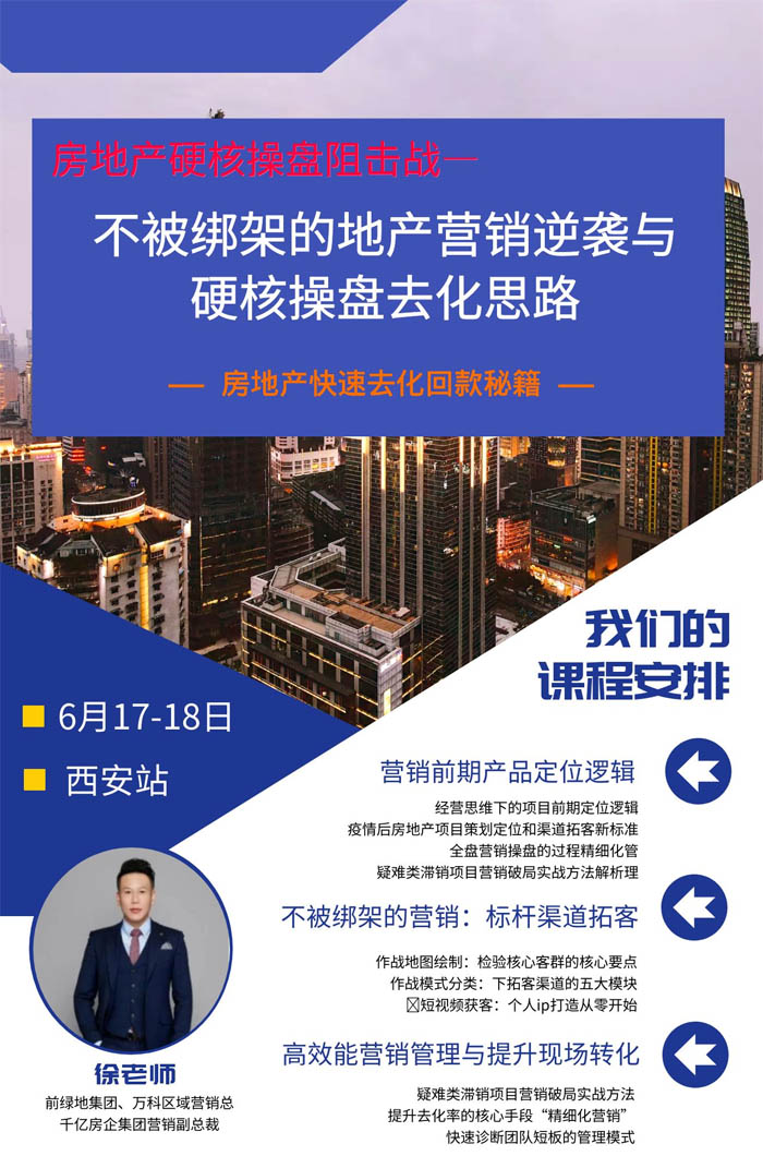 2023全球經(jīng)濟受到劇烈沖擊,房企暴雷依然蔓延,市場不確定性的情緒蔓延在每個地產(chǎn)人的心中,傳統(tǒng)營銷打法受到前所未有的挑戰(zhàn)和沖擊,指標如山,越堆越高,各大房企營銷人絞盡腦汁,拼命趕路,2023下半場如何持續(xù)領(lǐng)先和逆襲?非常時期到底用什么非常戰(zhàn)法?用什么工具和邏輯支撐營銷創(chuàng)新?說到底,這是場營銷的背水一戰(zhàn)!