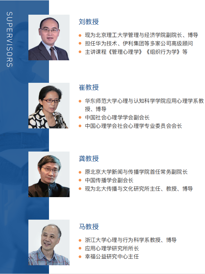 在完成本項目所要求的課程以及各學科作業(yè)之后, 完成30000字論文,所有順利畢業(yè)的學員都將獲 頒“心理學博士”學位證書! 上述課程設(shè)置會根據(jù)學校專業(yè)項目等具體需求適當調(diào)整,具體情況以學校最終決定的課程安排為準 部分校友企業(yè)名錄 【報讀條件】 1.碩士以上學位或?qū)W歷(心理學相關(guān)專業(yè)優(yōu)先),有八年以上管理經(jīng)驗的企 業(yè)領(lǐng)導; 2.在國家級刊物發(fā)表過論文,具有社會影響力的申請者優(yōu)先錄取。 【入讀費用】 學費:138000元 報名及注冊費:2000元 注:以上費用不包含前往校本部參加畢業(yè)典禮差旅費、簽證費、食宿費等自理費用。 【申請材料】 心理學博士入讀申請表 個人履歷表 個人陳述(入學動機信) 身份證原件掃描件、護照首頁掃描件 最高學歷或?qū)W位證原件掃描件 心理學博士入讀推薦信至少一封 藍底兩寸證件照3張 【學員人群】 已有碩士學位的企業(yè)中高層管理人員;企業(yè)董事長、總裁、總經(jīng)理、副總經(jīng)理及集團事業(yè)部總監(jiān)和企事業(yè)單位中高層管理者等。 【申請流程】 提交申請材料-資料審核-繳費并錄取-正式入學 【畢業(yè)典禮】 心理學博士學位課程項目可參加學校畢業(yè)典禮,畢 業(yè)典禮舉行地點在西班牙學校本部具有數(shù)百年歷 史的大禮堂,順利修完所有課程學分的學生可自 主選擇前往西班牙校本部體驗西班牙高等教育的 學術(shù)氛圍,感受被授予學位的莊嚴儀式,與全日 制的世界各地學生一起參加畢業(yè)典禮。 【學位證書頒發(fā)】 在完成本項目所要求的課程以及各學科作業(yè)之后, 完成30000字論文,所有順利畢業(yè)的學員都將獲 頒“心理學博士”學位證書!