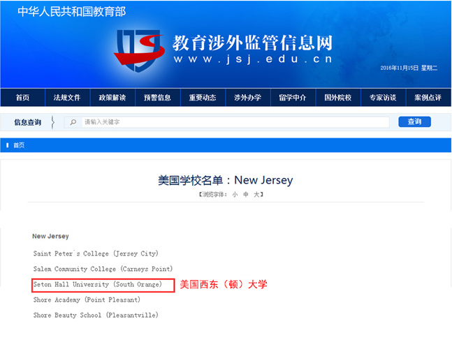美國西頓大學為美國高等教育委員會認可。網址: http://www.chea.org