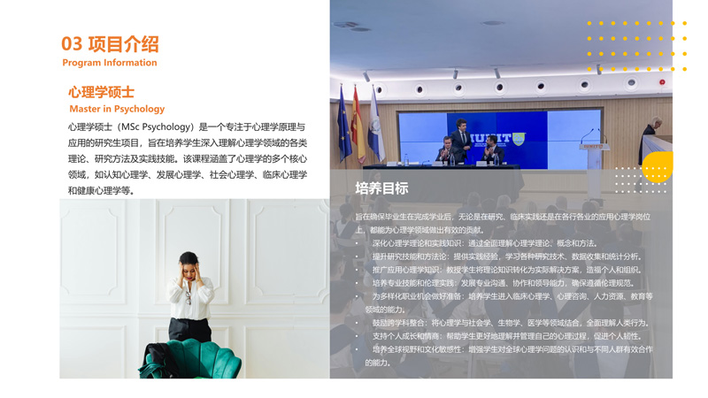 | 課程簡介: | 西班牙胡安卡洛斯國王大學(URJC)IUNIT學院提供的應(yīng)用心理學碩士項目,旨在培養(yǎng)能將心理學理論應(yīng)用于解決實際問題的高層次人才。該項目課程設(shè)置注重實戰(zhàn)與前沿,由大學博士生導師及業(yè)界專家授課,有助于學生獲得符合全球市場趨勢的行業(yè)競爭力。項目通常為1年學制,采用雙語(西班牙語授課,中文翻譯)線上教學模式,申請門檻相對靈活。畢業(yè)生可在教育、商業(yè)企業(yè)、醫(yī)療、司法等多個領(lǐng)域從事教學、管理、咨詢與技術(shù)開發(fā)等工作。 | |
