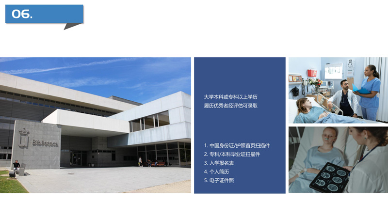 | 課程簡介: | 胡安卡洛斯國王大學(xué)IUNIT學(xué)院護理學(xué)碩士項目,旨在培養(yǎng)具備高級護理理論、卓越臨床決策能力與領(lǐng)導(dǎo)潛質(zhì)的專業(yè)人才。項目課程體系嚴謹,涵蓋護理質(zhì)量與安全、高級護理理論、健康政策與管理及公共衛(wèi)生等核心領(lǐng)域,致力于提升學(xué)生在復(fù)雜醫(yī)療環(huán)境中的實踐能力與研究水平。作為西班牙公立大學(xué)的碩士項目,它以合理的費用、全球認可的學(xué)位以及靈活的申請制入學(xué)方式,為護理及相關(guān)領(lǐng)域的專業(yè)人士提供了優(yōu)化知識結(jié)構(gòu)、加速職業(yè)發(fā)展的寶貴平臺。 | |