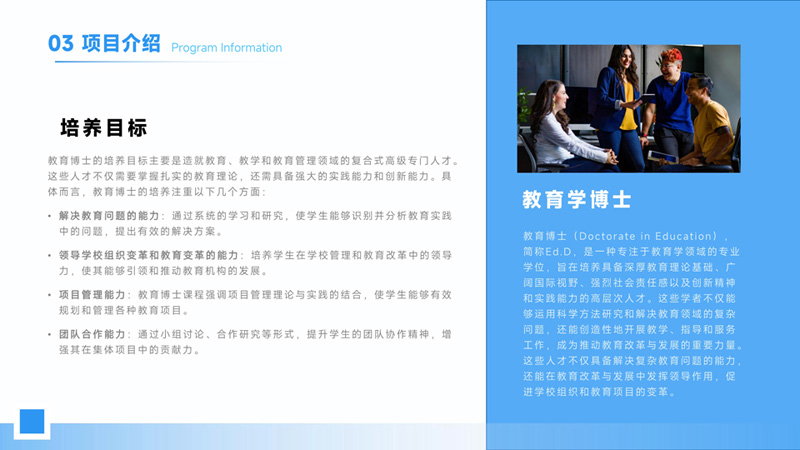 | 課程簡(jiǎn)介: | 胡安卡洛斯國(guó)王大學(xué)IUNIT學(xué)院教育學(xué)博士項(xiàng)目,旨在培養(yǎng)教育領(lǐng)域具備卓越學(xué)術(shù)研究能力、戰(zhàn)略領(lǐng)導(dǎo)力與前沿洞察力的高層次專家與領(lǐng)導(dǎo)者。項(xiàng)目課程深度融合教育理論、政策分析與創(chuàng)新實(shí)踐,著重提升學(xué)員在復(fù)雜教育生態(tài)中進(jìn)行扎實(shí)研究、撰寫學(xué)術(shù)論文及綜合解決實(shí)際問(wèn)題的能力。依托西班牙公立大學(xué)的優(yōu)質(zhì)教育資源與IUNIT學(xué)院的國(guó)際化平臺(tái),該項(xiàng)目為資深教育工作者、管理者及研究者提供了系統(tǒng)深化專業(yè)學(xué)識(shí)、重構(gòu)教育認(rèn)知、引領(lǐng)行業(yè)變革的高端學(xué)術(shù)殿堂。 | |
