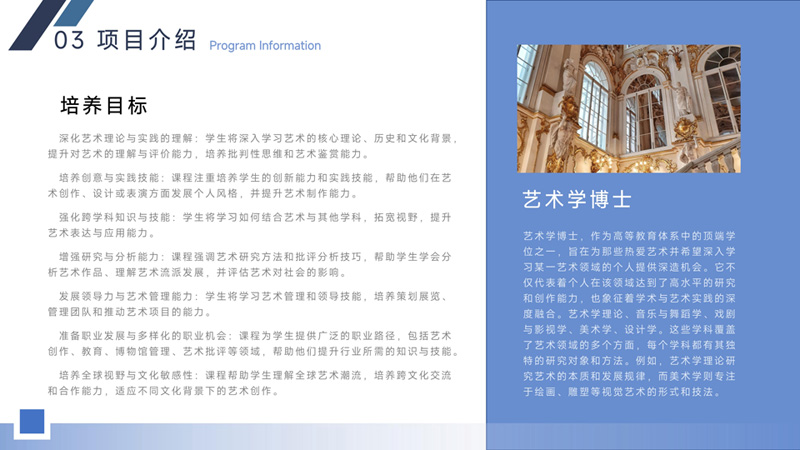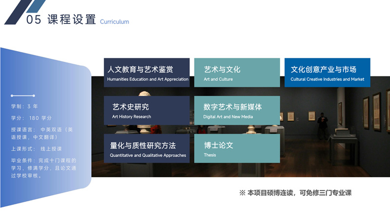 | 課程簡(jiǎn)介: | 胡安卡洛斯國(guó)王大學(xué)IUNIT學(xué)院藝術(shù)學(xué)博士項(xiàng)目,旨在培養(yǎng)兼具深厚理論素養(yǎng)、卓越研究能力與前沿創(chuàng)新實(shí)踐的藝術(shù)領(lǐng)域頂尖學(xué)者與領(lǐng)軍人才。項(xiàng)目深度聚焦藝術(shù)學(xué)理論、戲劇影視學(xué)、美術(shù)學(xué)及設(shè)計(jì)學(xué)等核心方向,致力于系統(tǒng)提升學(xué)員在藝術(shù)理論批判、跨學(xué)科研究及高端藝術(shù)項(xiàng)目管理方面的綜合能力。依托西班牙公立大學(xué)的優(yōu)質(zhì)學(xué)術(shù)資源與IUNIT學(xué)院的國(guó)際化平臺(tái),該項(xiàng)目為致力于推動(dòng)藝術(shù)理論創(chuàng)新與實(shí)踐發(fā)展的資深從業(yè)者及研究者,提供了實(shí)現(xiàn)學(xué)術(shù)突破、塑造行業(yè)影響力的頂級(jí)殿堂。 | |