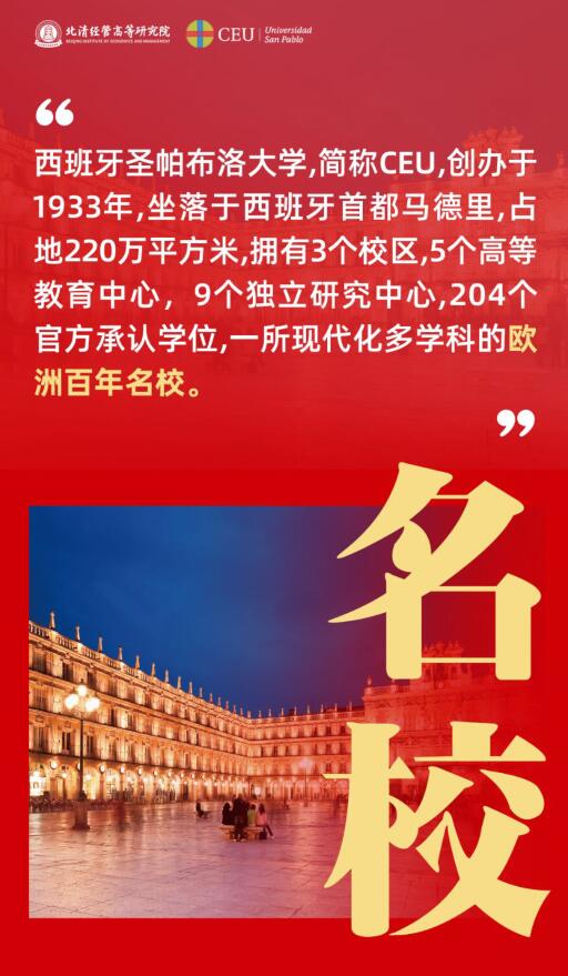 核心提示:西班牙圣帕布洛大學(xué)MBA碩士學(xué)歷火熱招生…………創(chuàng)辦于1933年,西班牙綜合排名第一,歷史最悠久、規(guī)模最大、最知名的私立大學(xué)!------------------------------------------------【CEU-MBA七大