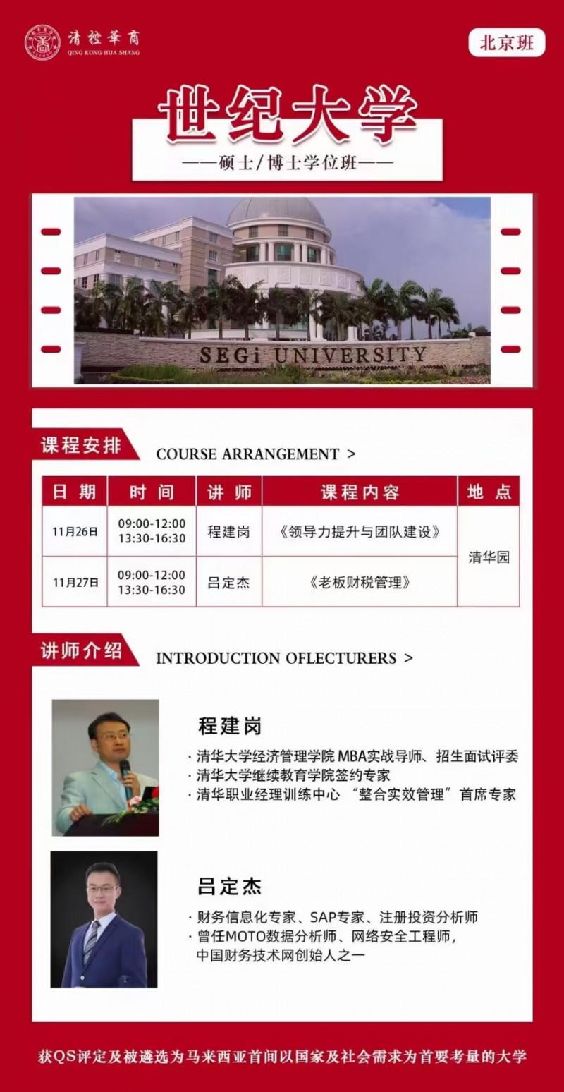 世紀(jì)大學(xué)MBA/DBA學(xué)位班2022年11月26-27日開課安排