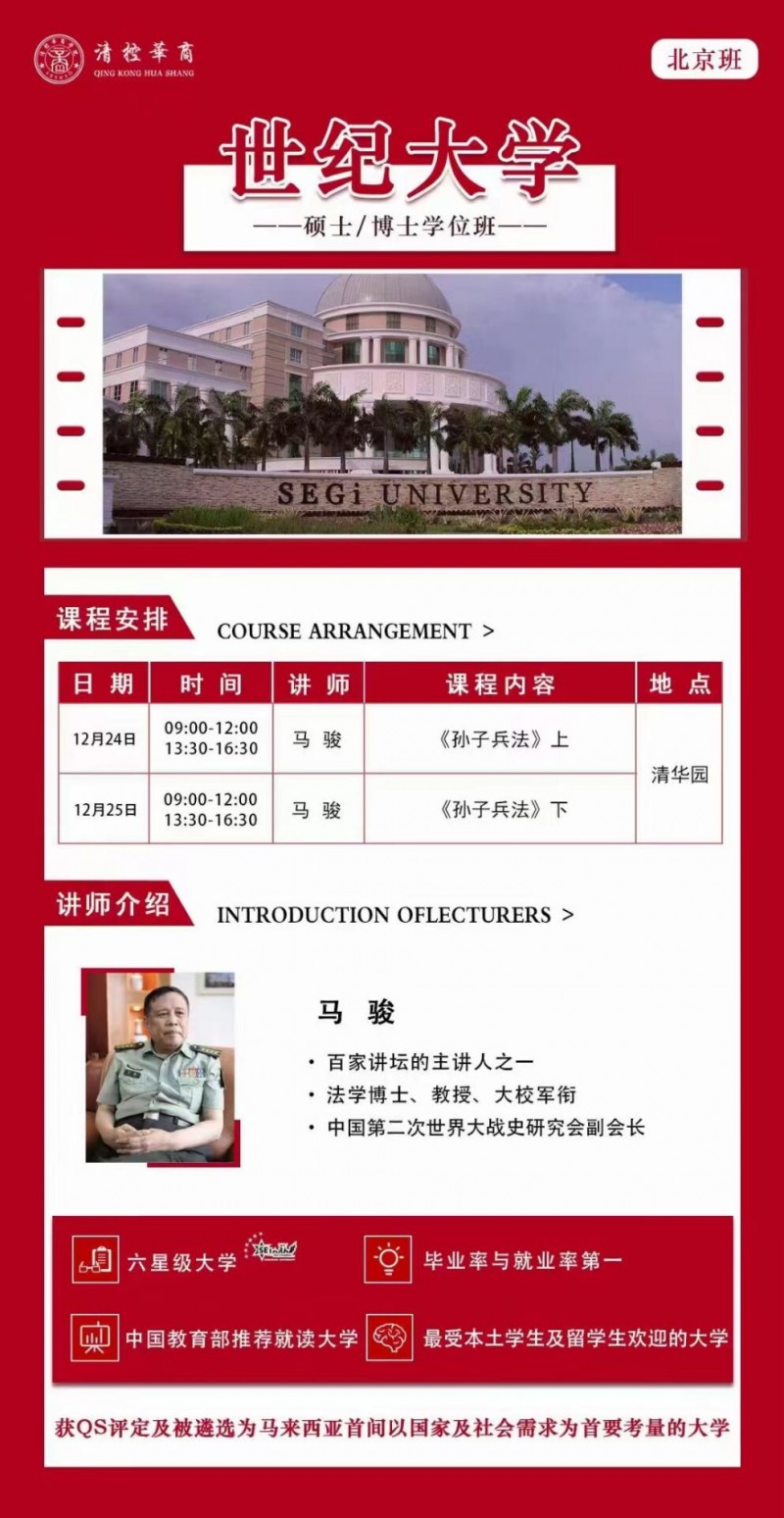 馬西來?亞世紀(jì)大學(xué)-工管商?理碩士/博學(xué)士?位班12月24-25日開課通知