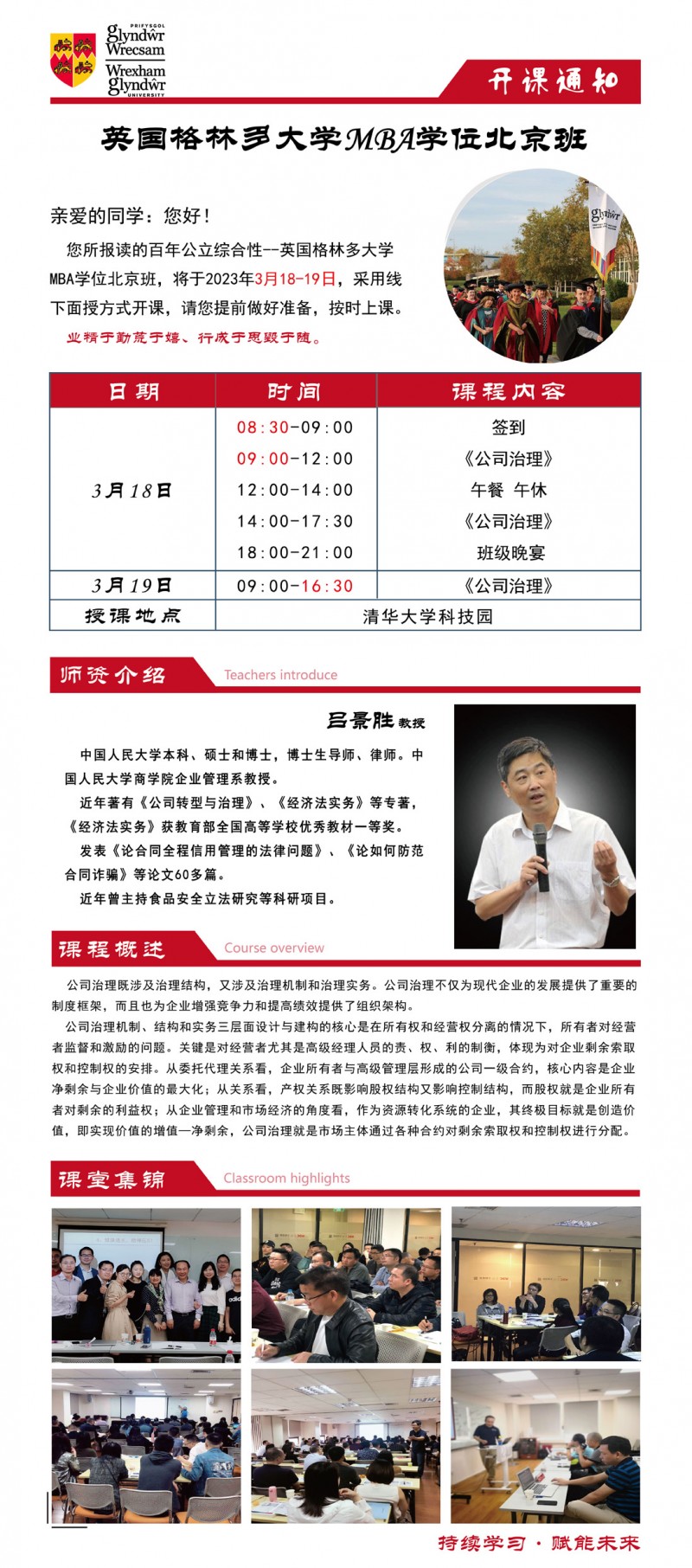 英國格林多大學(xué)MBA學(xué)位北京班3月18-19日開課安排