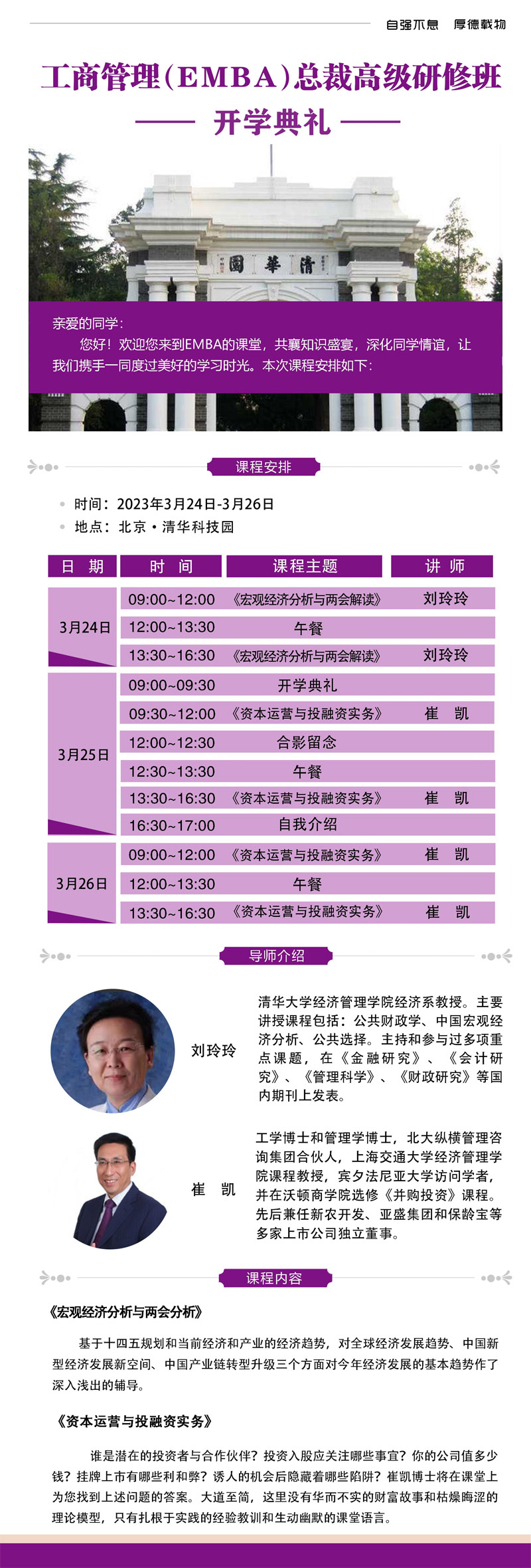 親愛的同學(xué)您好! 歡迎您來到EMBA的課堂,共襄知識(shí)盛宴,深化同學(xué)情誼,讓我們攜手一同度過美好的學(xué)習(xí)時(shí)光。本次課程安排如下: