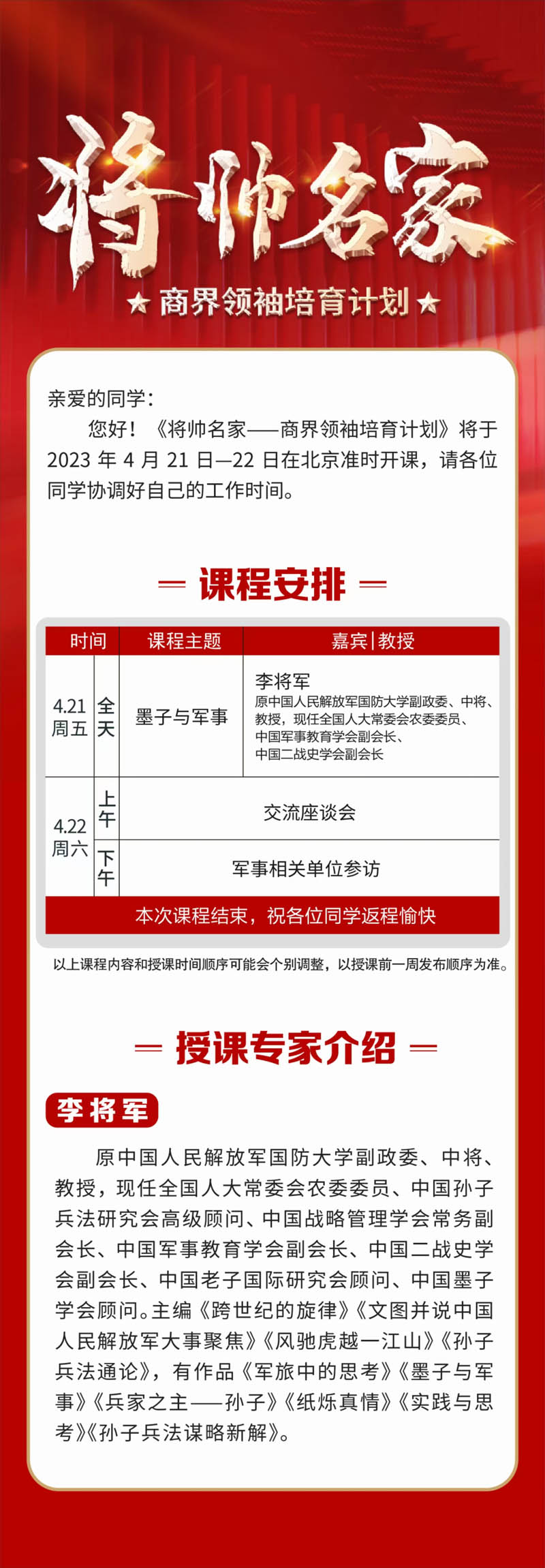 將帥名家-商界領(lǐng)袖培育計(jì)劃2023年4月21-22日開(kāi)課通知