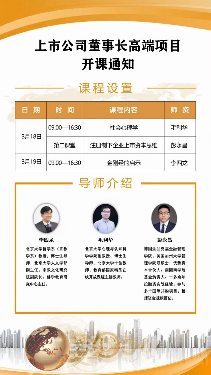 上市公司董事長高端項目2023年3月18~19日課程安排
