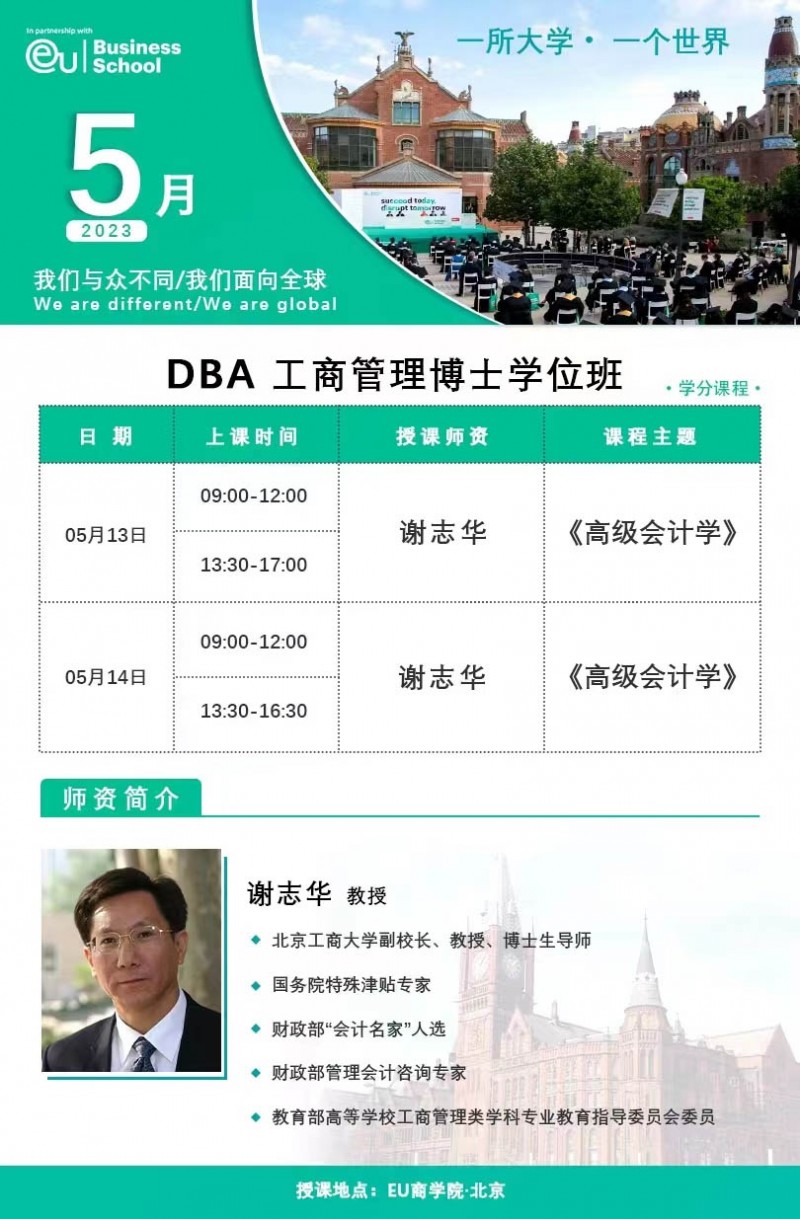 EU商學(xué)院DBA工商管理博士學(xué)位班2023年5月開課安排