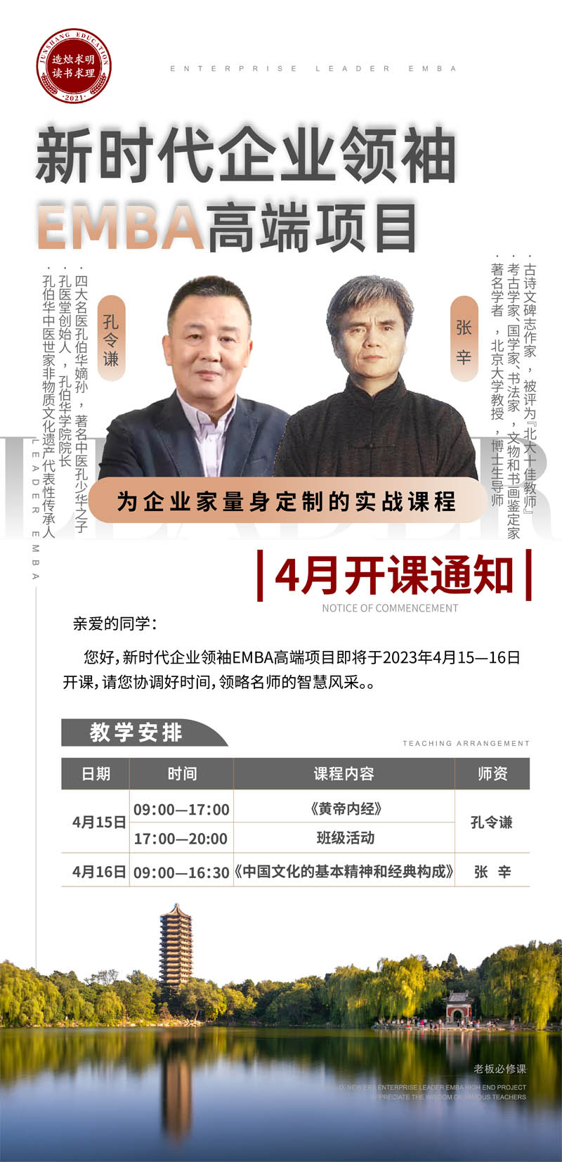 新時代企業(yè)領(lǐng)袖EMBA高端項目4月開課通知