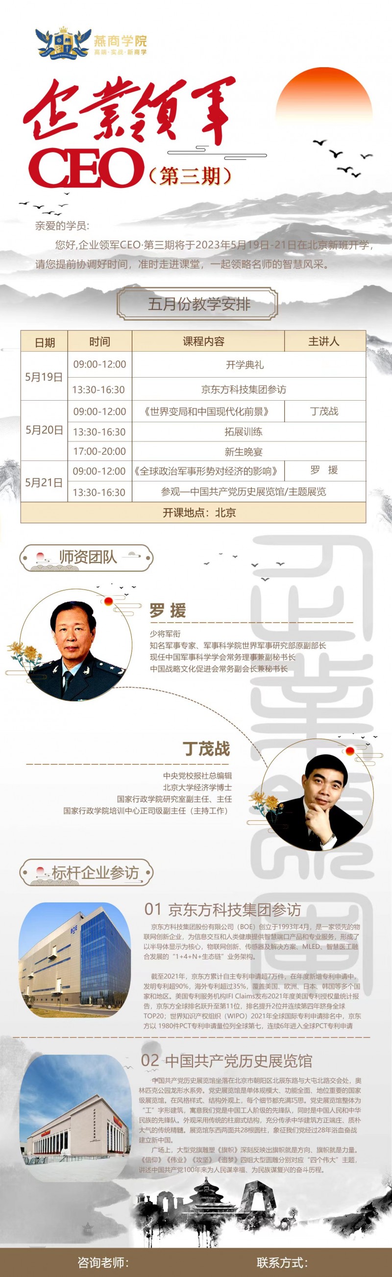 企業(yè)領(lǐng)軍CEO班第三期2023年5月教學(xué)安排