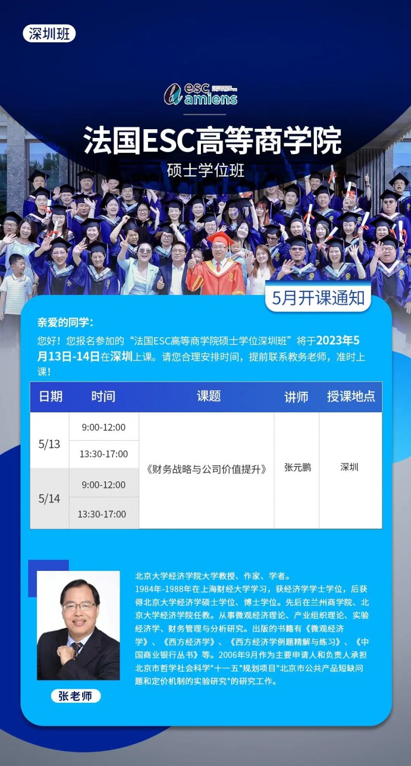 親愛的同學(xué):您好!您報(bào)名參加的“法國(guó)ESC高等商學(xué)院碩士學(xué)位深圳班”將于2023年5月13日-14日在深圳上課。請(qǐng)您合理安排時(shí)間,提前聯(lián)系教務(wù)老師,準(zhǔn)時(shí)上課!
