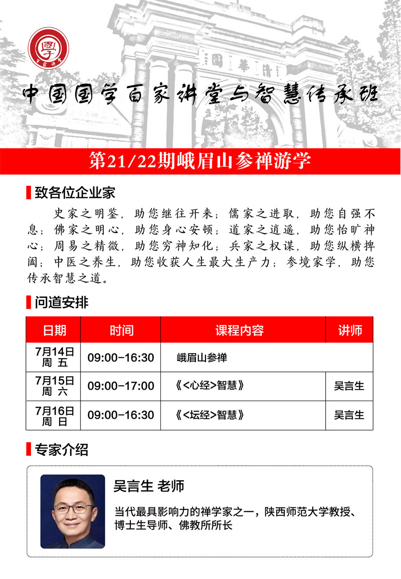 中國(guó)國(guó)學(xué)百家講堂與智慧傳承班第21/22期峨眉山參禪游學(xué)