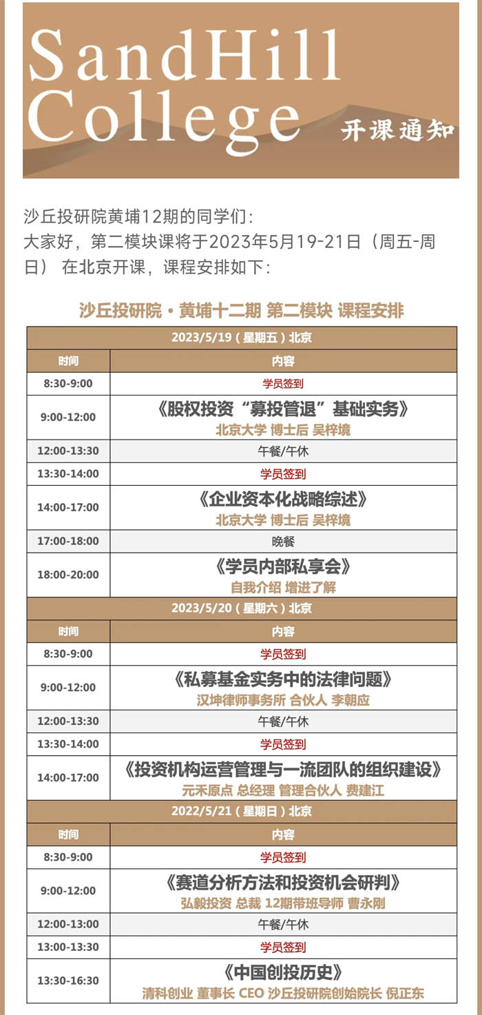 沙丘投研院黃埔十二期第二模塊2023年5月課程安排