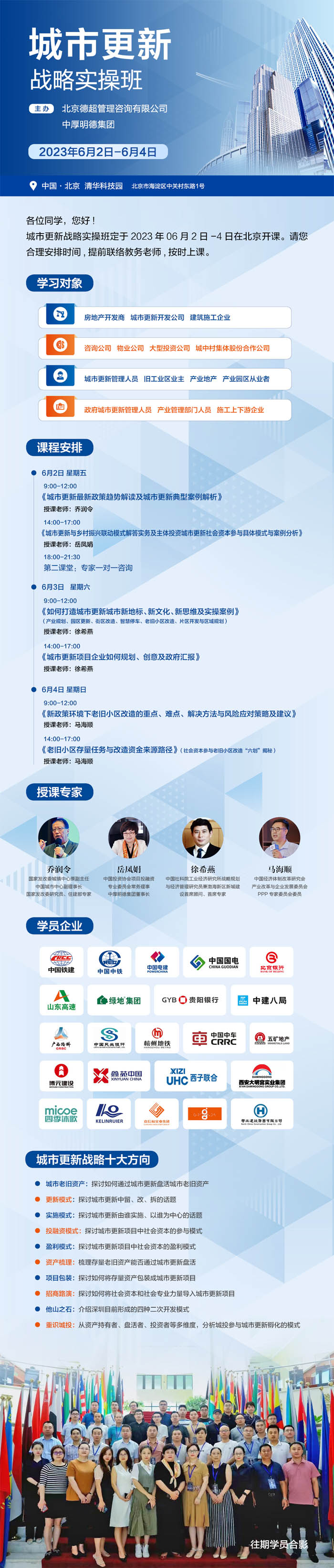 城市更新戰(zhàn)略實(shí)操班2023年6月2-4日開課通知