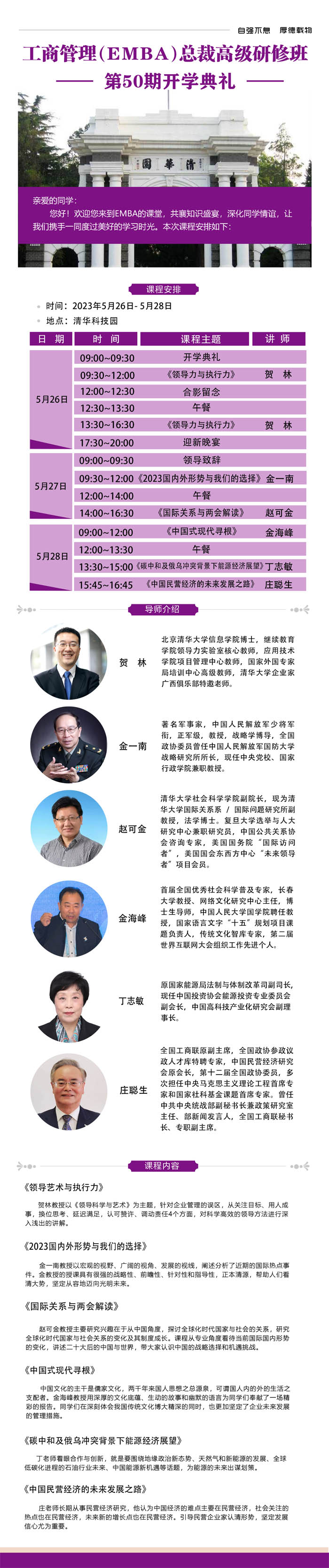 融商學(xué)院工商管理EMBA總裁班-2023年5月開學(xué)典禮安排