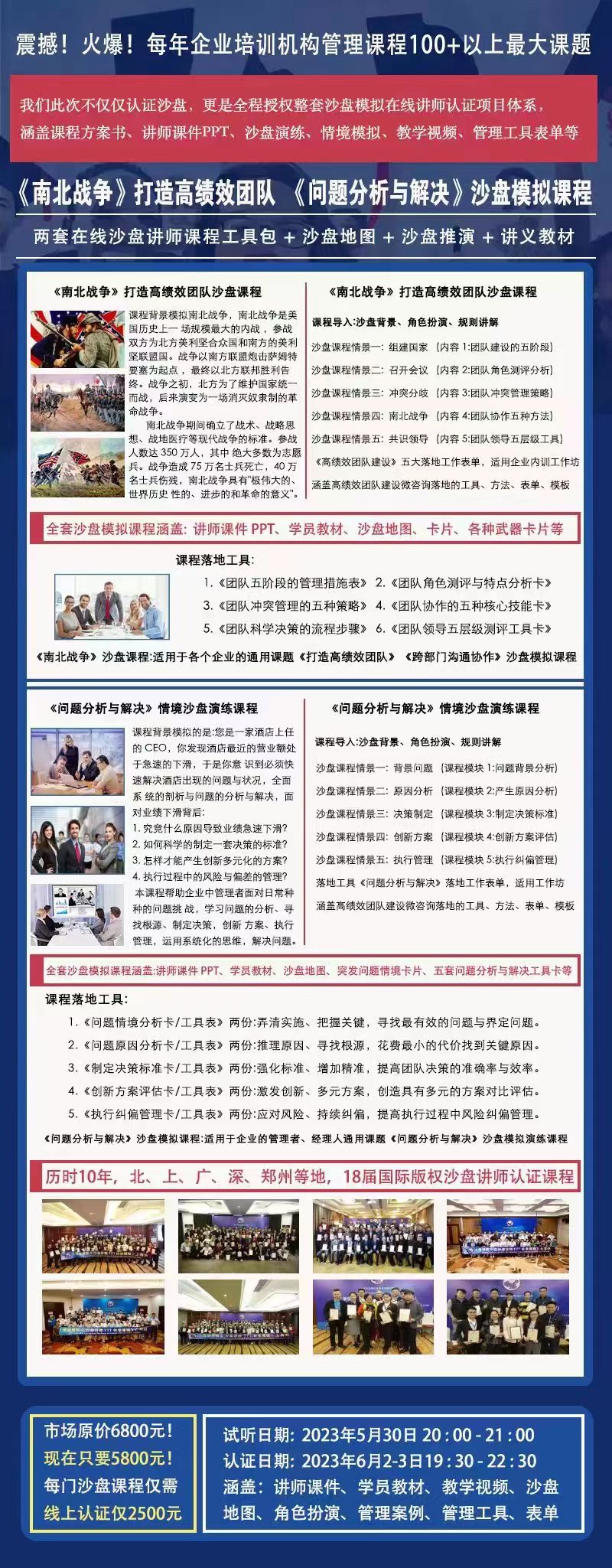 核心提示:震撼!火爆!課程主題剛需培訓(xùn)機構(gòu)100+以上課量2023年5月30日晚20-21:00《南北戰(zhàn)爭》情境模擬沙盤打造高績效團隊沙盤課程1.1南北戰(zhàn)爭課程背景目標(biāo)1.2南北戰(zhàn)爭課程規(guī)則教具1.3打造高績效團隊理