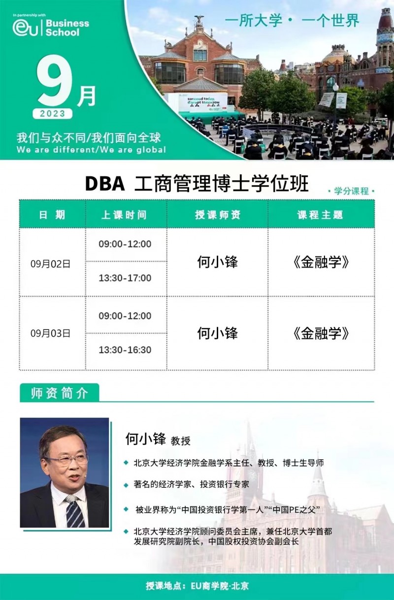 EU商學(xué)院DBA工商管理博士學(xué)位班-2023年9月開課通知