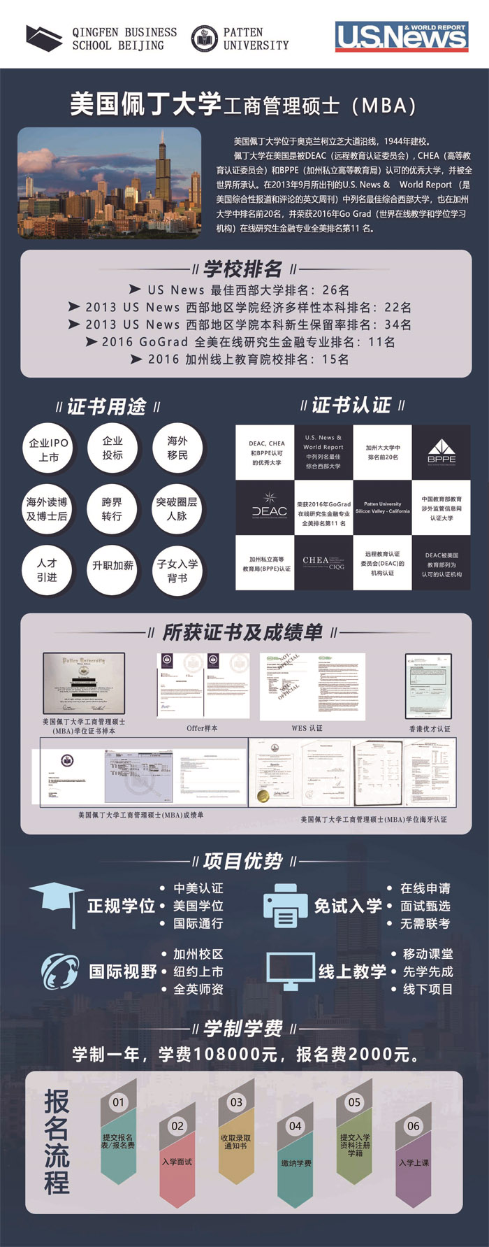 學制短學費低,專業(yè)助學好畢業(yè),網(wǎng)課減少出國,不影響工作,結識海內外優(yōu)秀人士,屆時學生還將進行為期2-4周美國深度商務考察工作,走訪美國硅谷和各大名校(哈佛、普林斯頓、耶魯、麻省理工等!