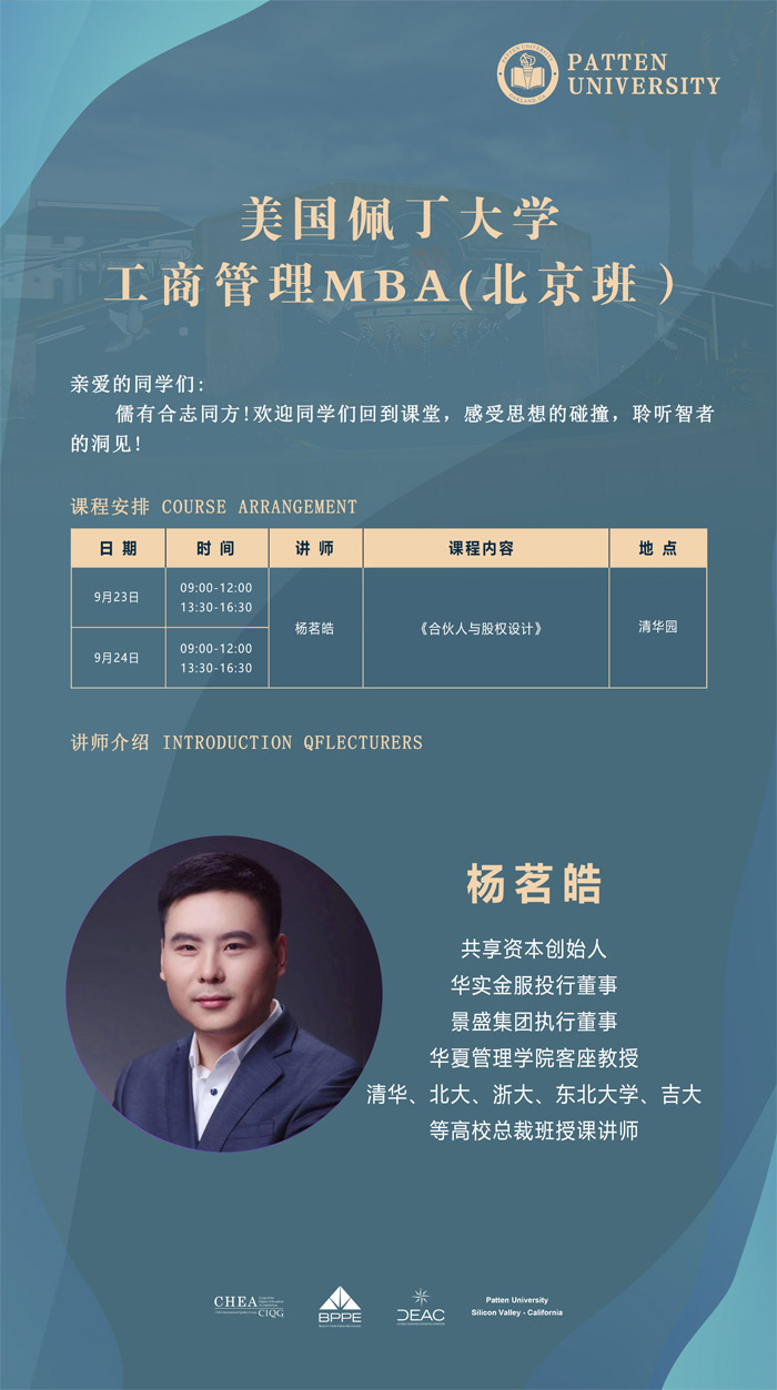 核心提示:親愛的同學(xué)們:儒有合志同方!歡迎同學(xué)們回到課堂,感受思想的碰撞,聆聽智者的洞見!開課時(shí)間:2023年9月23-24日講師介紹楊茗皓共享資本創(chuàng)始人華實(shí)金服投行董事景盛集團(tuán)執(zhí)行董事華夏管理學(xué)院客座