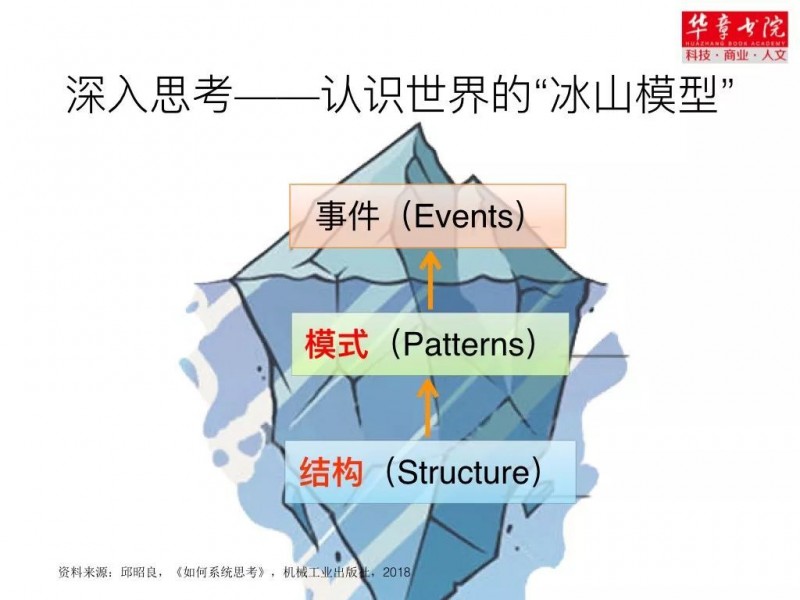 如果你想提高你的思維深度,就不能僅僅停留在事件這個(gè)層面上隨波逐流,而是要識別出事件背后的關(guān)鍵問題,看到它們的趨勢和模式。