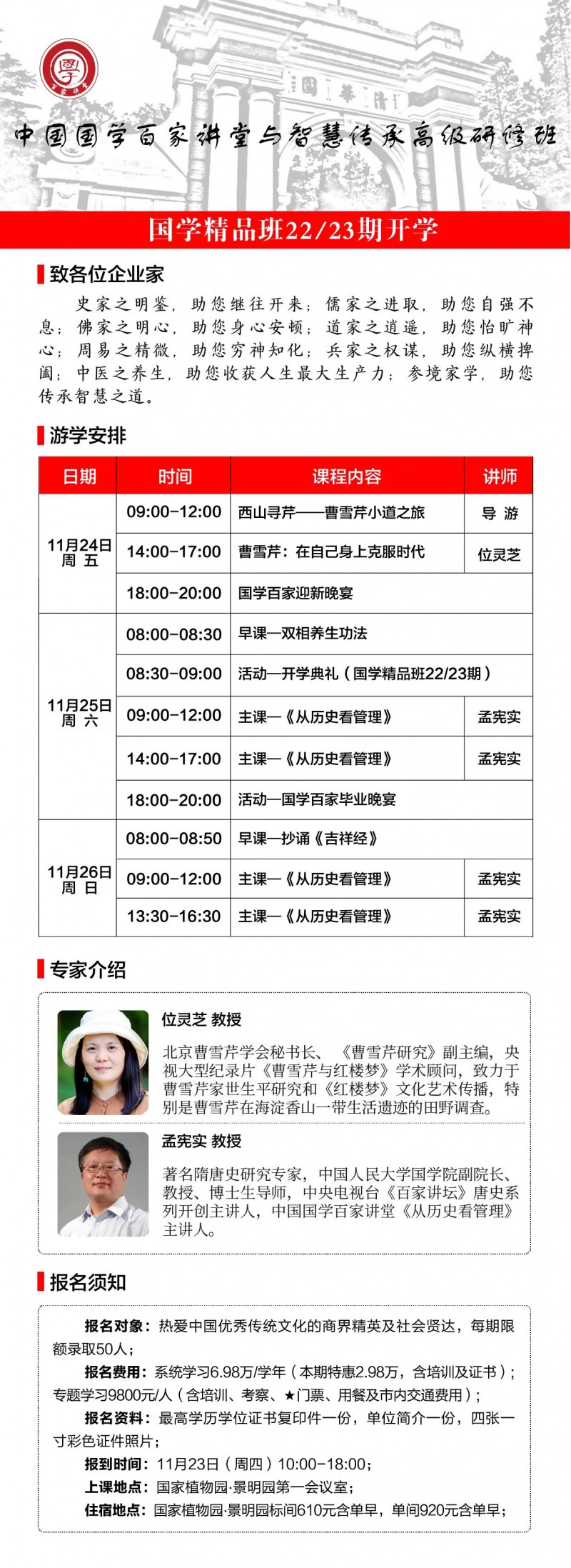 中國國學(xué)百家講堂與智慧傳承高級研修班-2023年11月開課通知