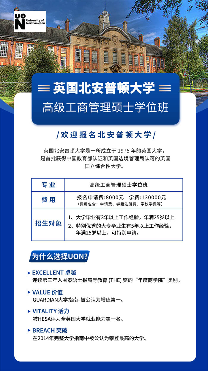 英國(guó)北安普頓大學(xué)高級(jí)工商管理碩士學(xué)位班2024年招生介紹