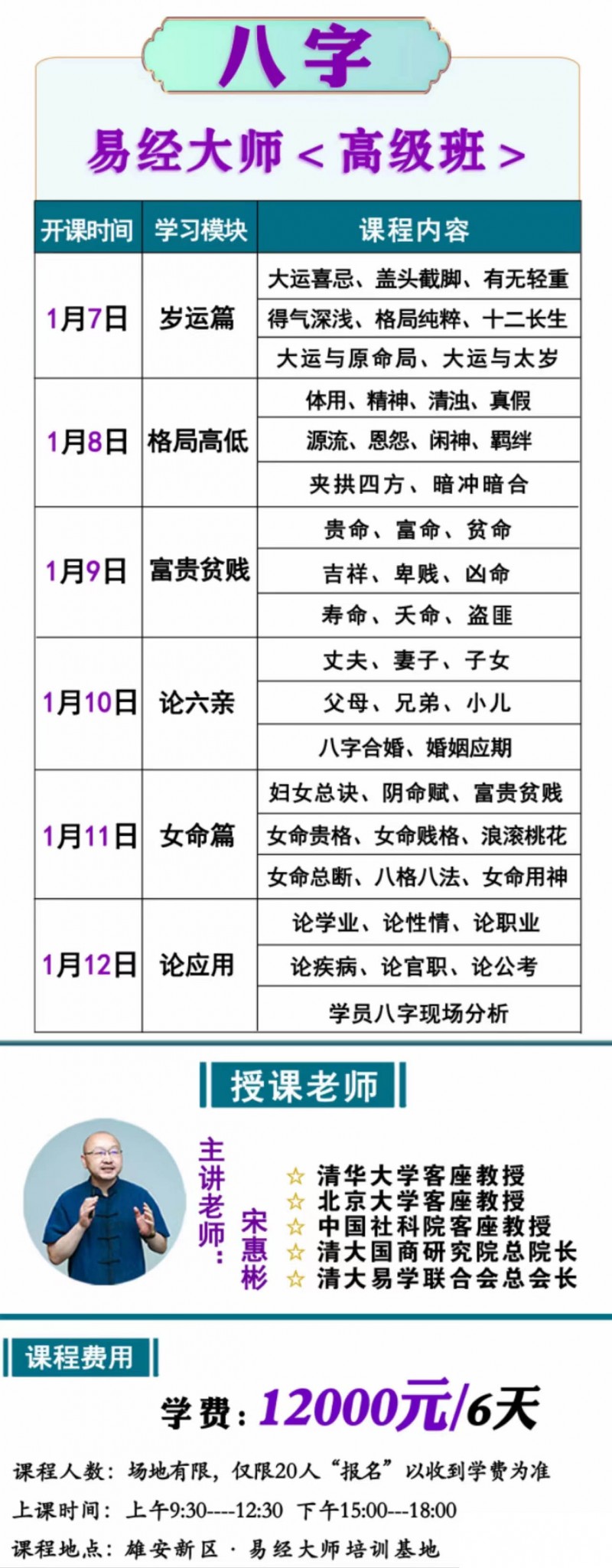 八字培訓(xùn)-易經(jīng)大師高級班2024年1月課程通知