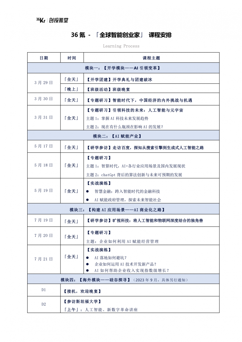 36氪「全球智能創(chuàng)業(yè)家」2024年 課程安排