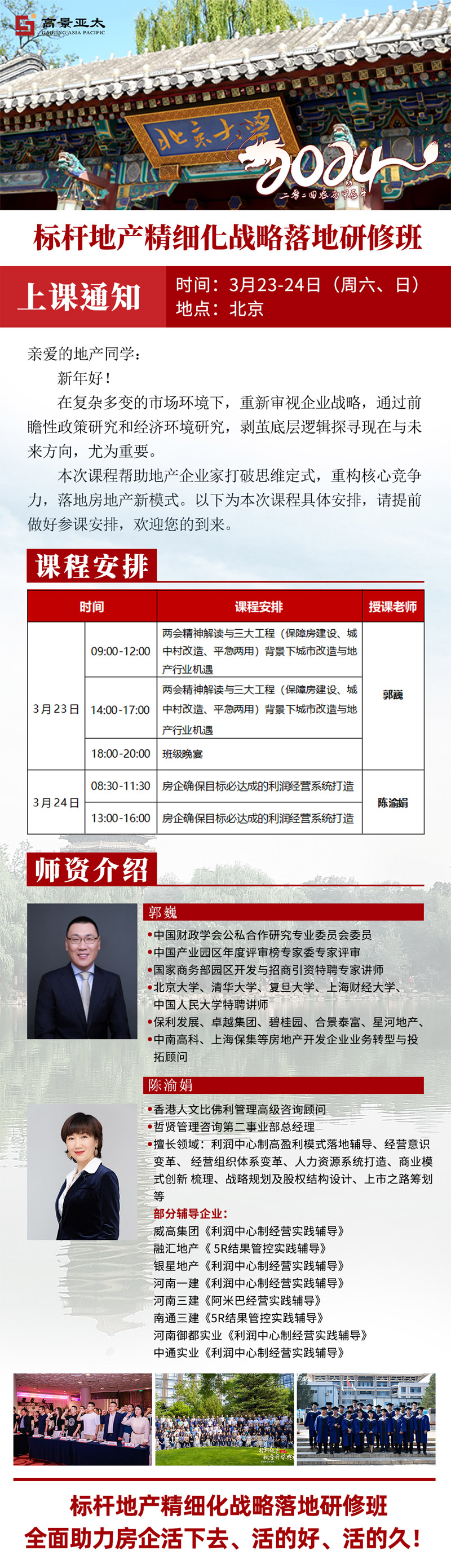 標(biāo)桿地產(chǎn)精細(xì)化戰(zhàn)略落地研修班2024年3月開課通知