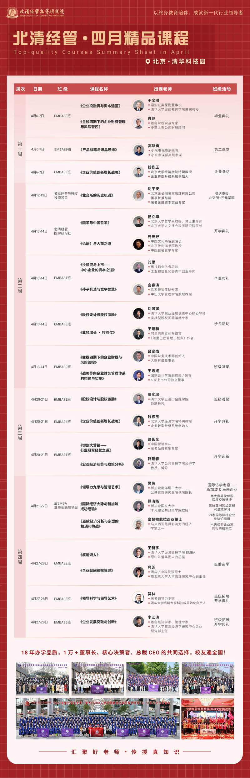 清大EMBA工商管理總裁班2026年3月份課表匯總