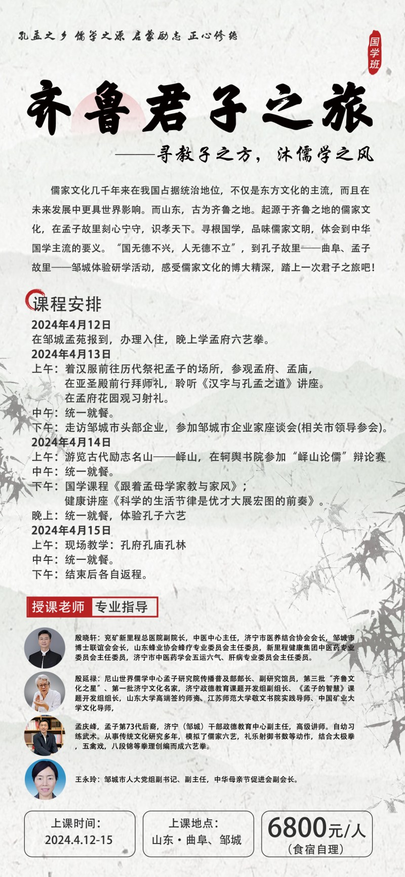 4月12日-15日,融商學(xué)院國學(xué)班“齊魯君子之旅”模塊課正式開啟。