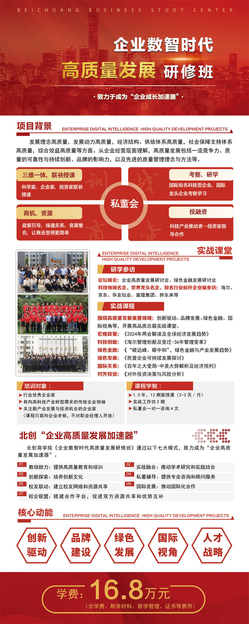 學費學制:16.8萬元/人,1.5年,12期面授課(2-3天/期),實戰(zhàn)工作坊2期,私董會一對一咨詢4次授課為主。