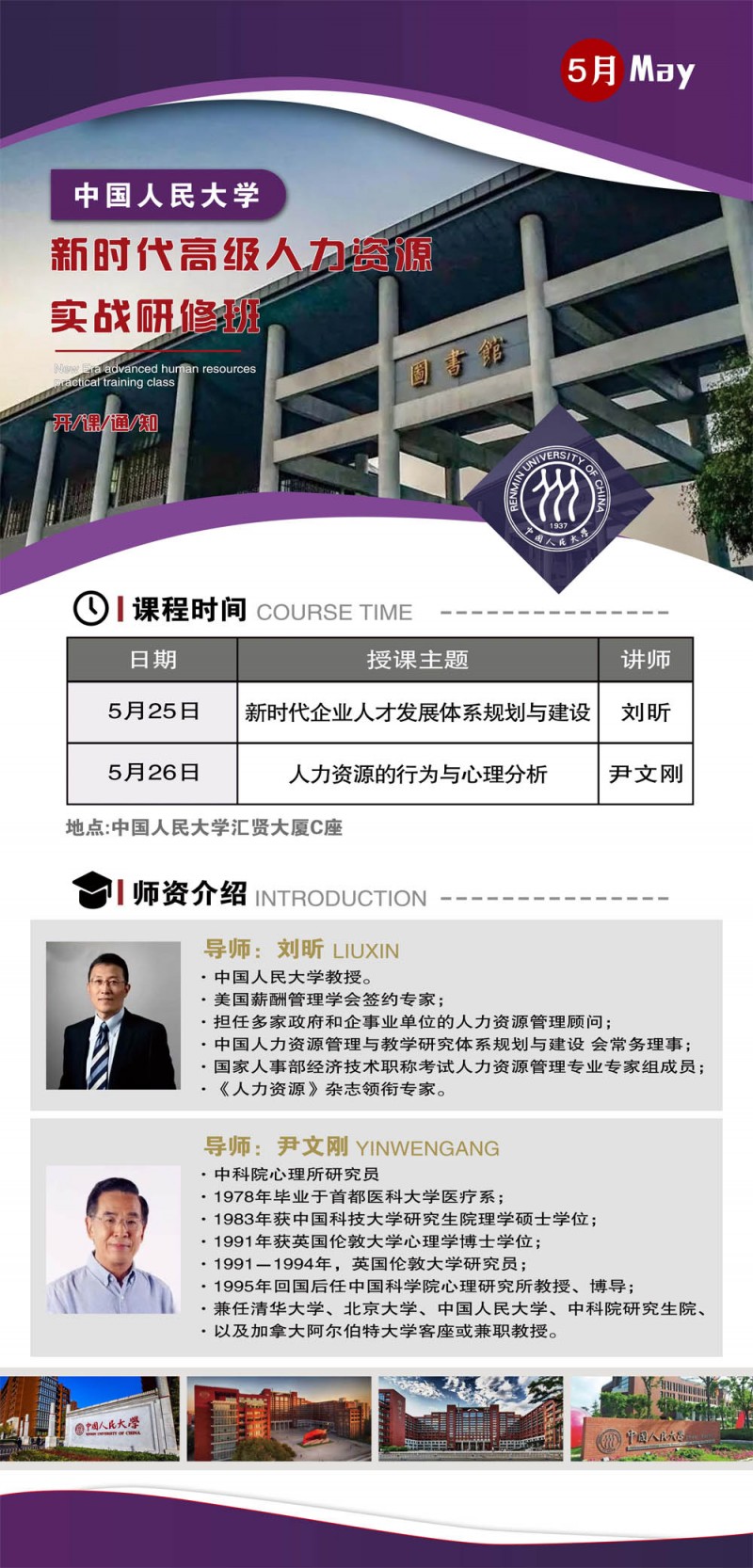 人民大學新時代高級人力資源實戰(zhàn)研修班2024年5月開課通知