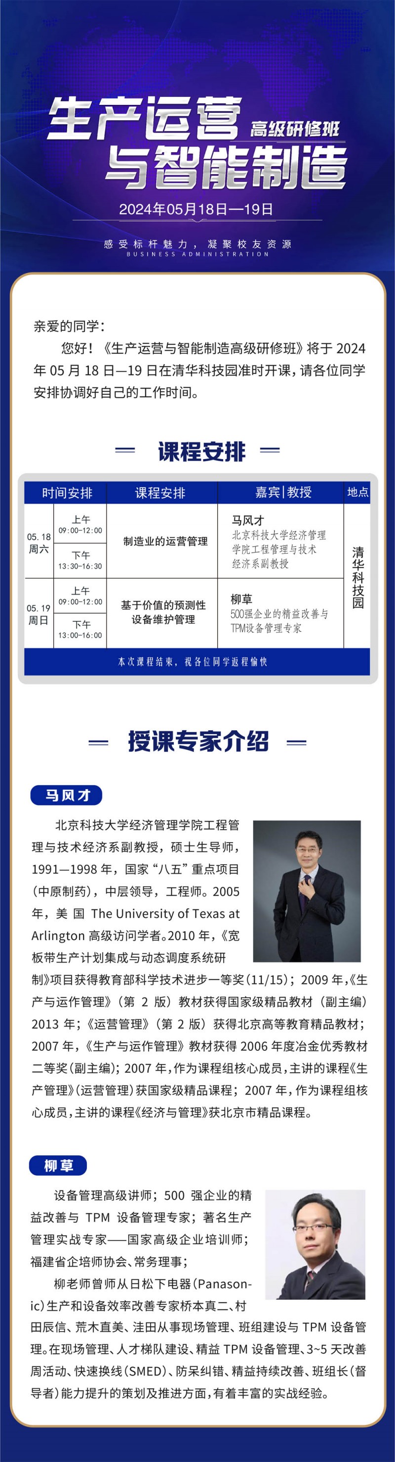 生產(chǎn)運營與智能制造高級研修班5月18-19日開課通知