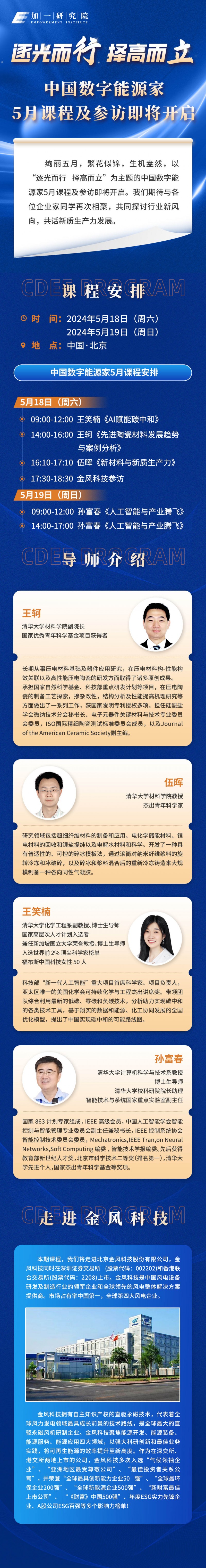 絢麗五月,繁花似錦,生機(jī)盎然,以”逐光而行 擇高而立“為主題的中國(guó)數(shù)字能源家5月課程及參訪即將開(kāi)啟。本次我們將走進(jìn)金風(fēng)科技,共同探討產(chǎn)業(yè)新風(fēng)向,共話新質(zhì)生產(chǎn)力發(fā)展。