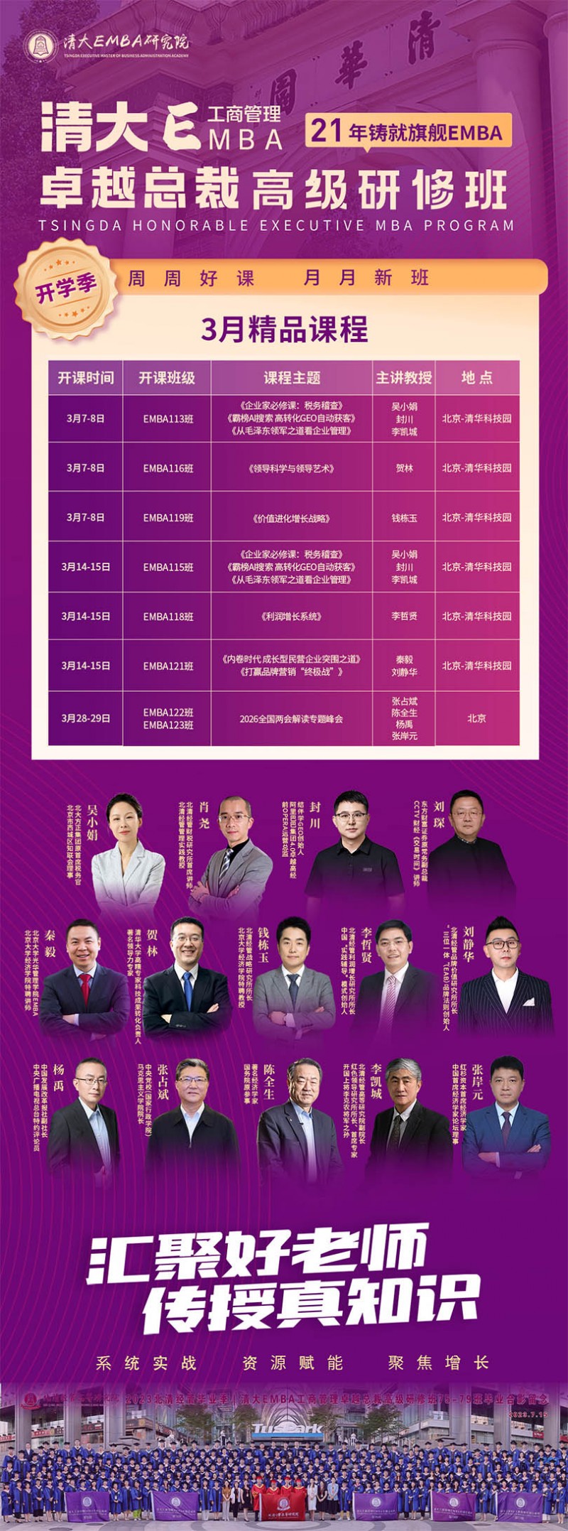清大EMBA工商管理總裁班2026年3月份課表匯總