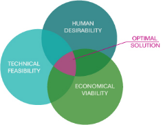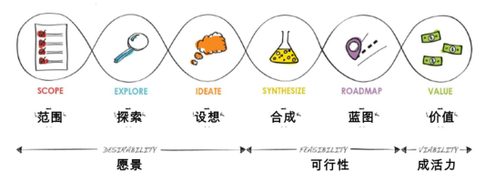 設(shè)計(jì)思維旨在讓合適的人做值得的事情,但是他也會在整個(gè)創(chuàng)新的過程中去考慮技術(shù)可行性和商業(yè)可持續(xù)性。邱柏森