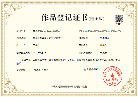 《抱怨身處黑暗,不如點燈前行》專利證書