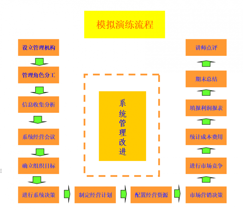 9:00-10:00 | 公司建立 管理架構(gòu) | 模擬建立一個新公司的管理組織架構(gòu)團隊, 體驗虛擬的生產(chǎn)行業(yè)和虛擬的市場競爭。 | 新公司成立寫真 各管理職能職責(zé) | 職能表 |