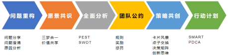 未來探索一共5個階段,分別是過去、現(xiàn)在、未來、共識和行動。各階段是遞進的,成果是一個行動計劃和跟進架構(gòu)。