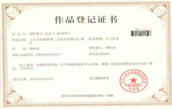 《向世界500強學(xué)HR三支柱》獲國家版權(quán)局證書(中國唯一證書)