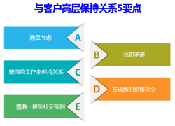 7. 掌握客戶內(nèi)部不同人員約見會(huì)面技巧和方法,快速建立彼此間的信任關(guān)系;