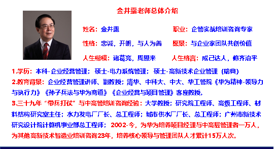 3. 培訓(xùn)目的:手過一遍,勝于眼過千遍。老師在總結(jié)華為培養(yǎng)中高層與項(xiàng)目經(jīng)理經(jīng)驗(yàn)的基礎(chǔ)上,采用“訓(xùn)戰(zhàn)結(jié)合、學(xué)以致用”的方法,迅速提升企業(yè)的項(xiàng)目管理管理效能。