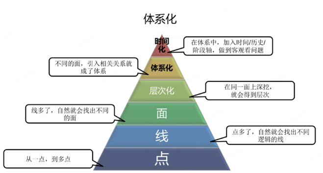 1. 建立系統(tǒng)思考體系:看清復(fù)雜系統(tǒng),理清從整體到局部的分析層次,建立發(fā)現(xiàn)問(wèn)題、分析問(wèn)題和解決問(wèn)題的系統(tǒng)思維;