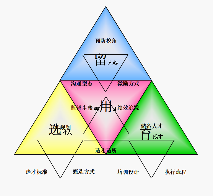 因此,企業(yè)內(nèi)部的高階經(jīng)理人要負(fù)起人力資源發(fā)展的角色,從選、育、用、留的角度,去了解如何選對(duì)人、教對(duì)方法、發(fā)揮人才潛能、留住人才以擴(kuò)展企業(yè),創(chuàng)造高績(jī)效。